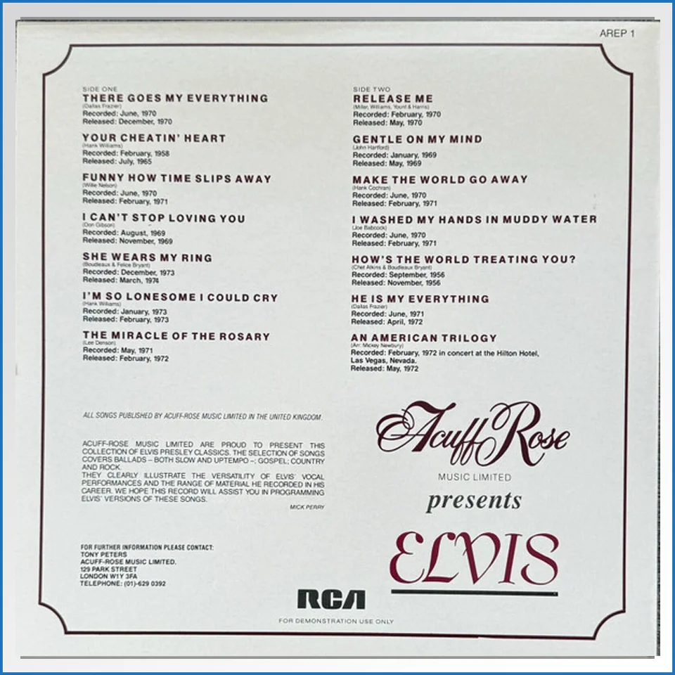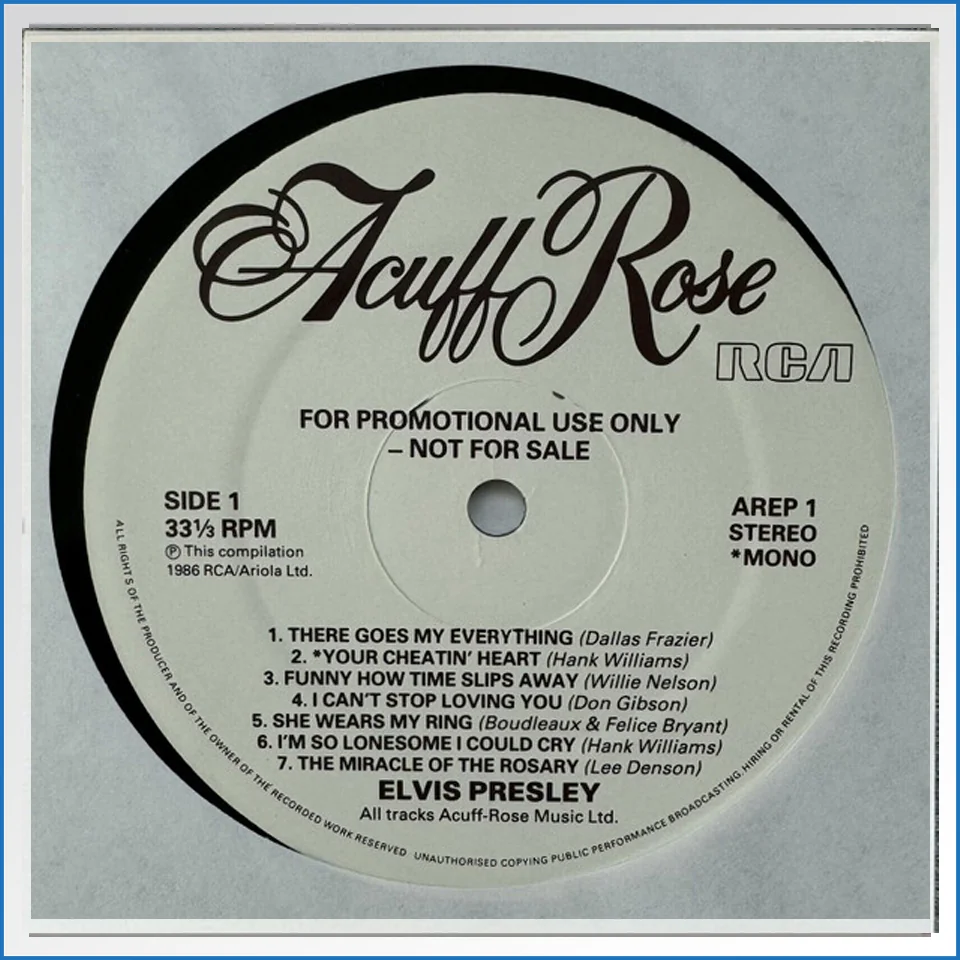 Acuff Rose Presents Elvis RCA – AREP1 UK 1983 White Label Promo LP – B-WARE