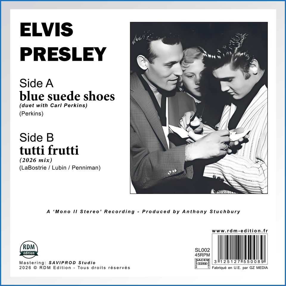 Erleben Sie die Magie von Elvis Presley wie nie zuvor! Wir freuen uns, unsere nächste Veröffentlichung anzukündigen: Eine 7"-Vinyl-Single und eine CD in Kartonhülle. Blue Suede Shoes ("Duet" With Carl Perkins) / Tutti Frutti (2026 Mix)