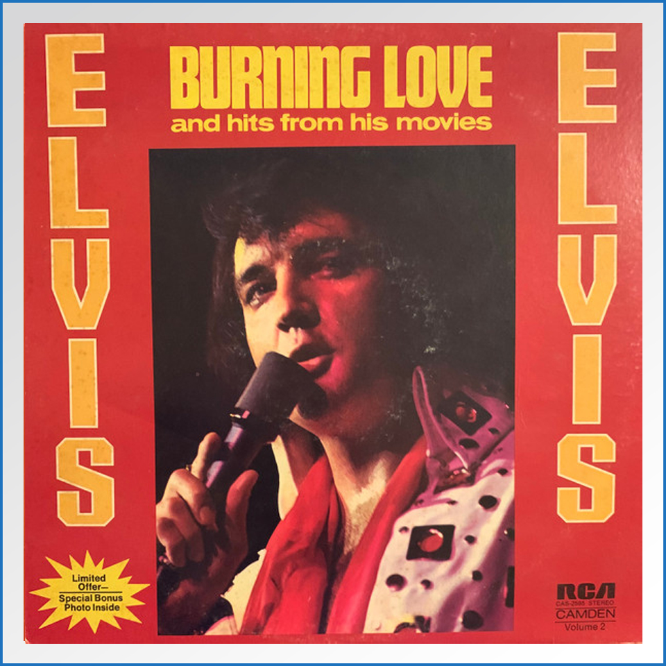 Elvis Presley US LP bonus photo, for the LP CAS-2595 Burning Love and Hits From His Movies, Volume 2. This photo was only in the LP with the imprint Special Bonus including bonus photo.Size 8×10 inch Picture of Elvis with an advertisement for Elvis as Recorded at Madison Square Garden on the other side.