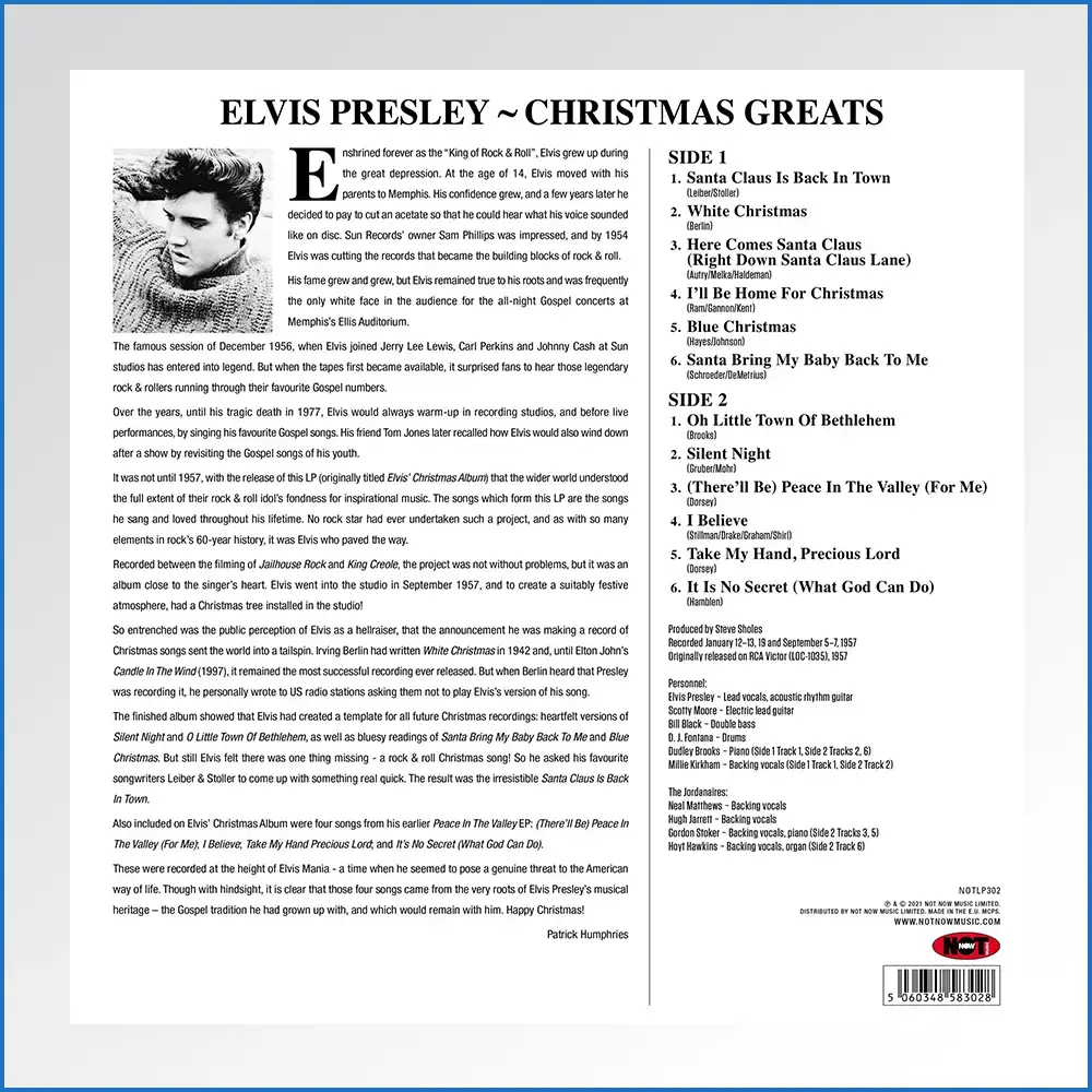 1. Santa Claus Is Back In Town 2. White Christmas 3. Here Comes Santa Claus (Right Down Santa Claus Lane) 4. I’ll Be Home For Christmas 5. Blue Christmas 6. Santa Bring My Baby Back