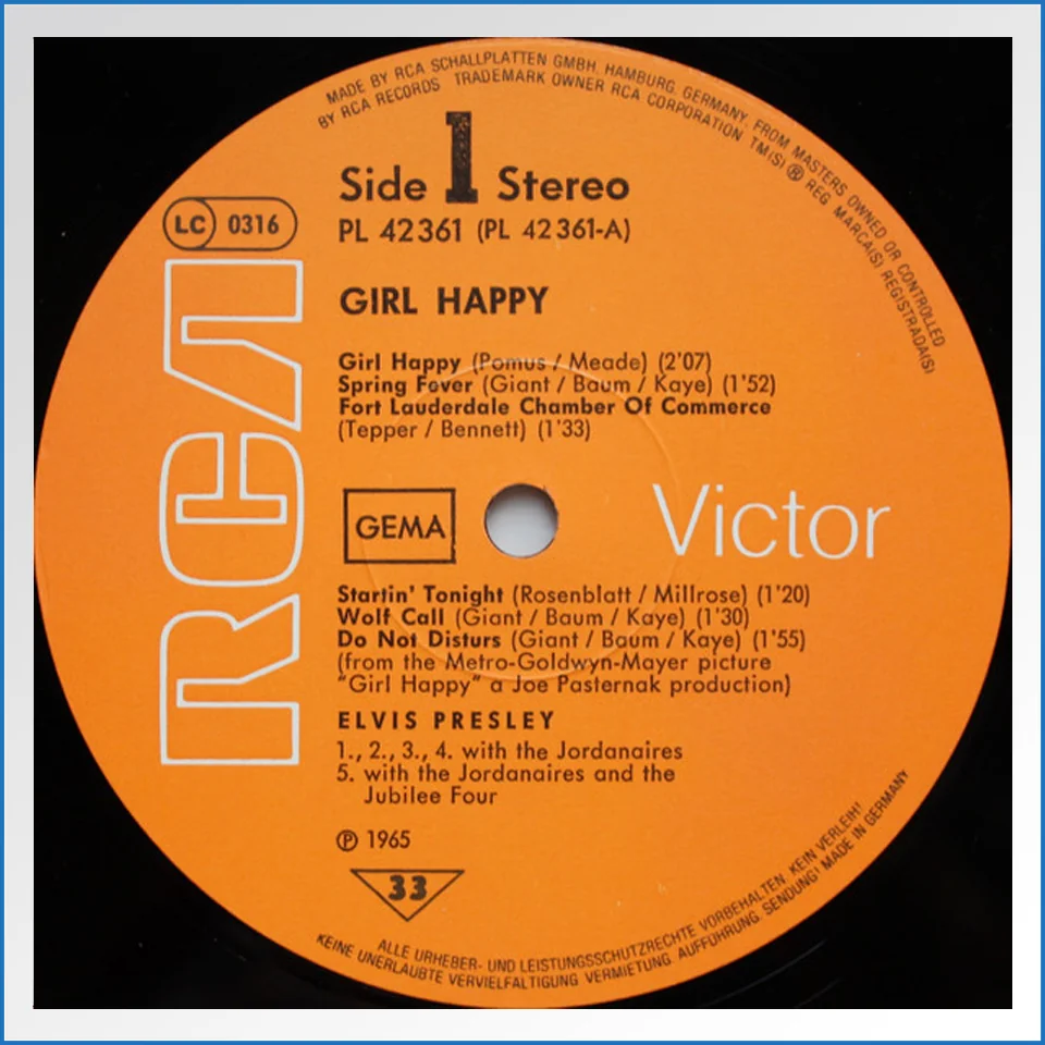 Elvis Girl Happy 1977 RCA LP – B-WARE