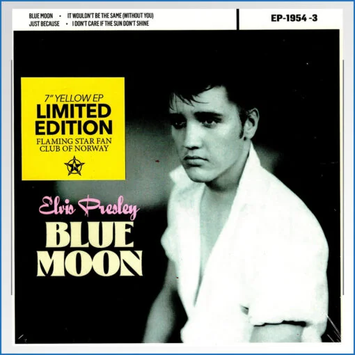 Der norwegische Fanclub "Flaming Star" präsentiert stolz seine mit Spannung erwartete dritte EP! Diese besondere Veröffentlichung trägt den klangvollen Titel "Elvis Presley – Blue Moon" und wird Musikliebhaber mit einer exklusiven Pressung auf leuchtend gelbem Vinyl begeistern. Es ist ein echtes Sammlerstück für alle Fans des King of Rock 'n' Roll und des Fanclubs.
