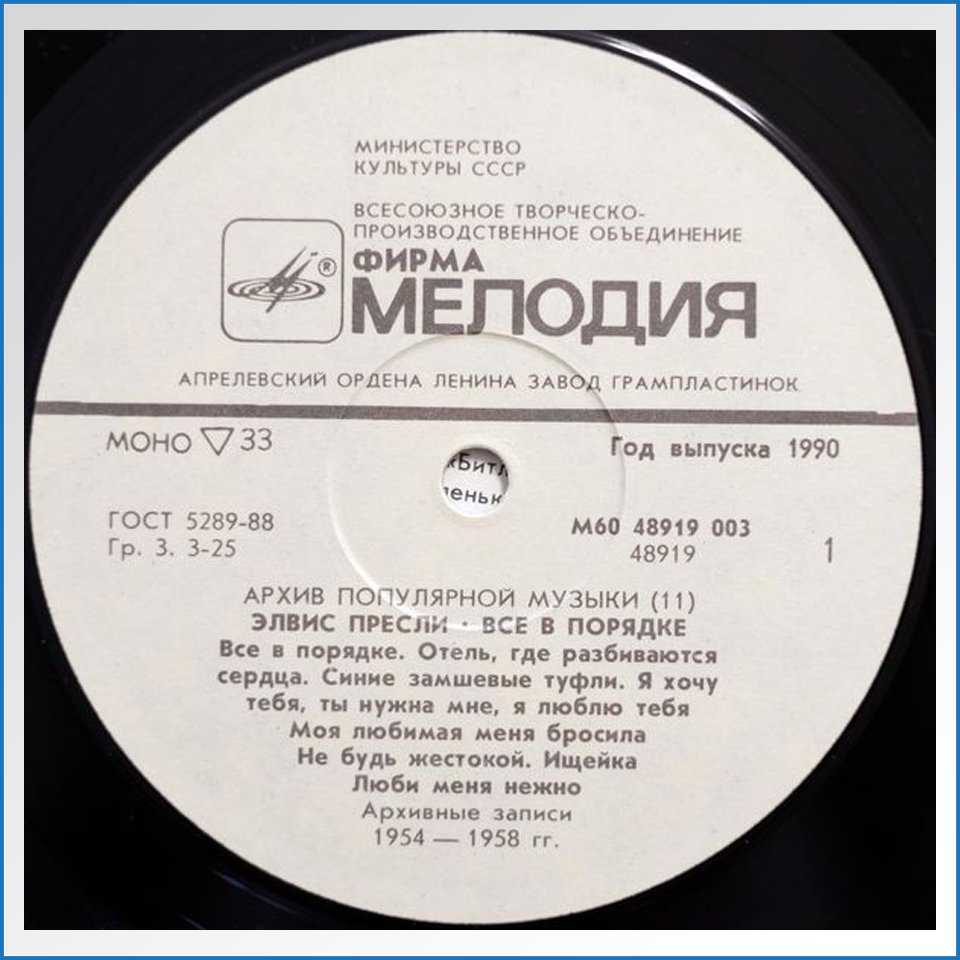 Elvis Presley – That's All Right Мелодия – М60 48919 003 LP – B-WARE