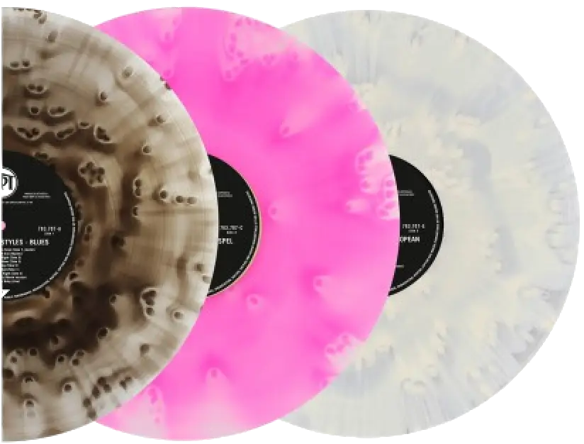 -A 3LP set with a cloudy effect in neon pink, black, white and translucent.