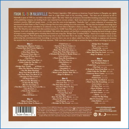 Elvis-Presley-Fans dürfen sich 2020 über ein besonderes Release freuen: »From Elvis In Nashville«, die lang erwartete endgültige Chronik von Elvis Presleys mythischen Marathon-Sessions mit den »Nashville Cats« im Jahr 1970.