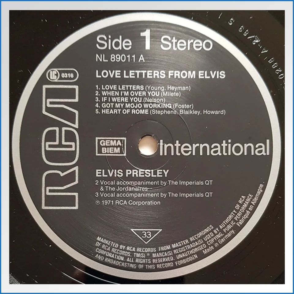 Love Letters form Elvis NL 89011 RCA LP – B-WARE
